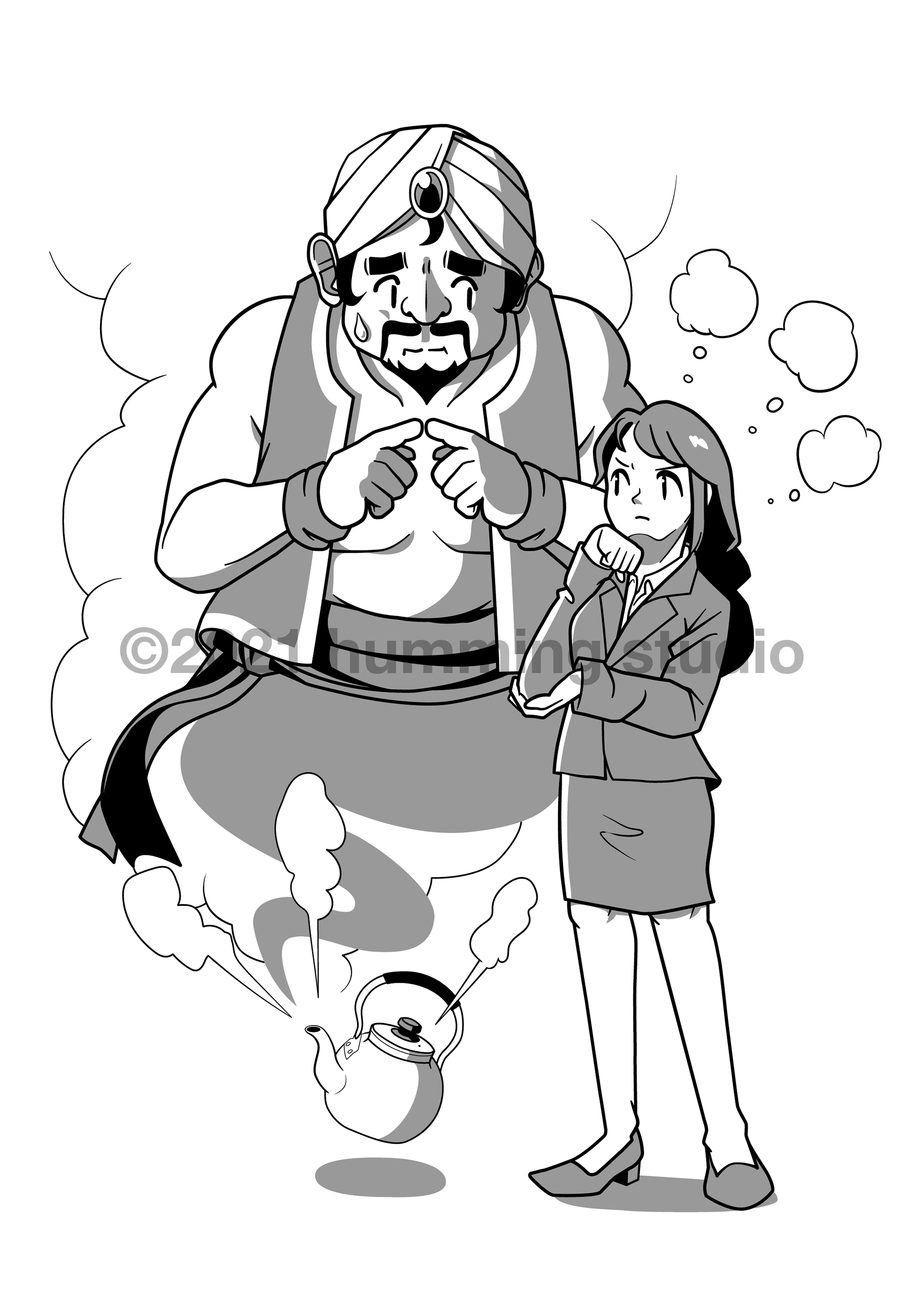 文章力向上オンラインサロン放課後ライティング倶楽部「7日間ライティング合宿vol.2」内「ヤカンの魔人とわたし〜完全版〜」扉イラスト